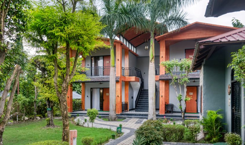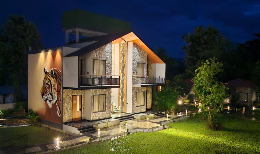 There are 10 Woodland cottages at Corbett Machaan Resort.